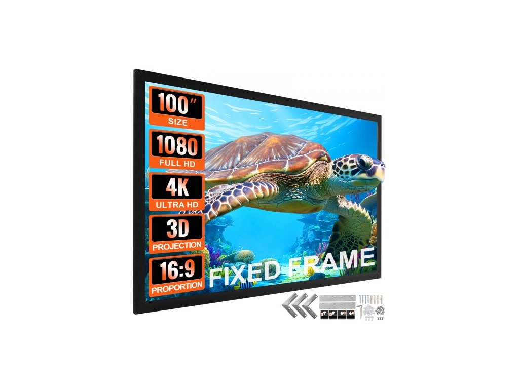 projekčné plátno s uhlopriečkou 100 palcov a pomerom strán 16:9 4K HD s hliníkovým rámom Prenosný projektor s držiakom na stenu na domáce použitie v exteriéri (100 palcov)