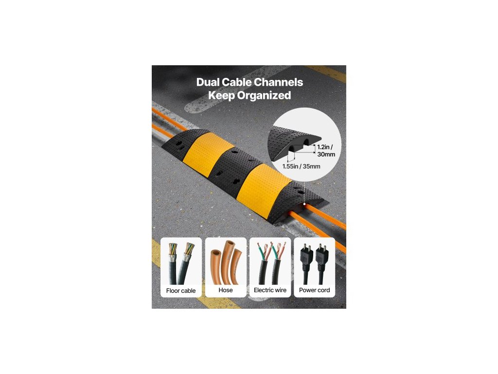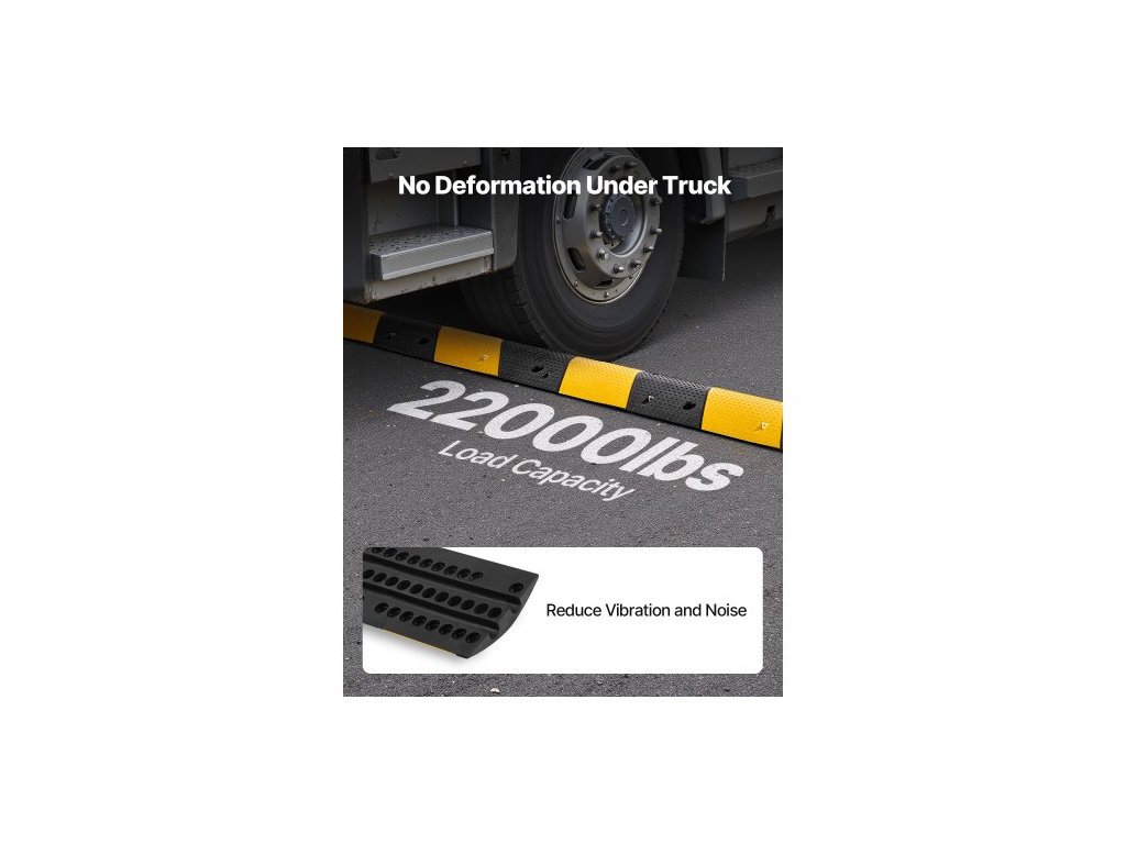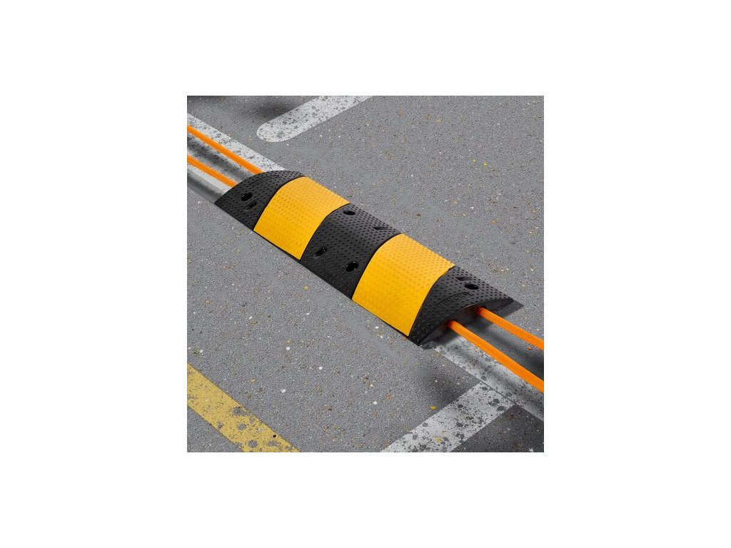 1000MM gumový zpomalovací prah, balení po 2 kusech, 2kanálový zpomalovací prah pro vysoké zatížení, nosnost 9 979 kg/nápravu, nájezdová rampa s ochranou kabelů s rozpínacími šrouby, pro asfaltové, betonové, štěrkové příjezdové cesty a silnice