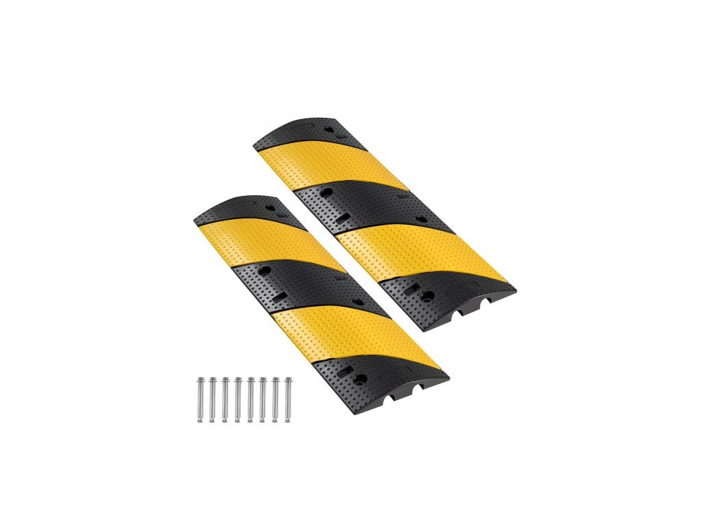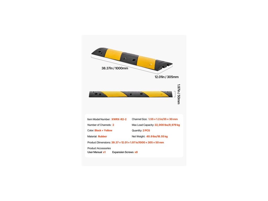 1000MM gumový zpomalovací prah, balení po 2 kusech, 2kanálový těžký zpomalovací prah pro silniční dopravu, nosnost 9 979 kg/náprava, nájezdová rampa s ochranou kabelů s rozpínacími šrouby, pro asfaltové, betonové, štěrkové příjezdové cesty a silnice