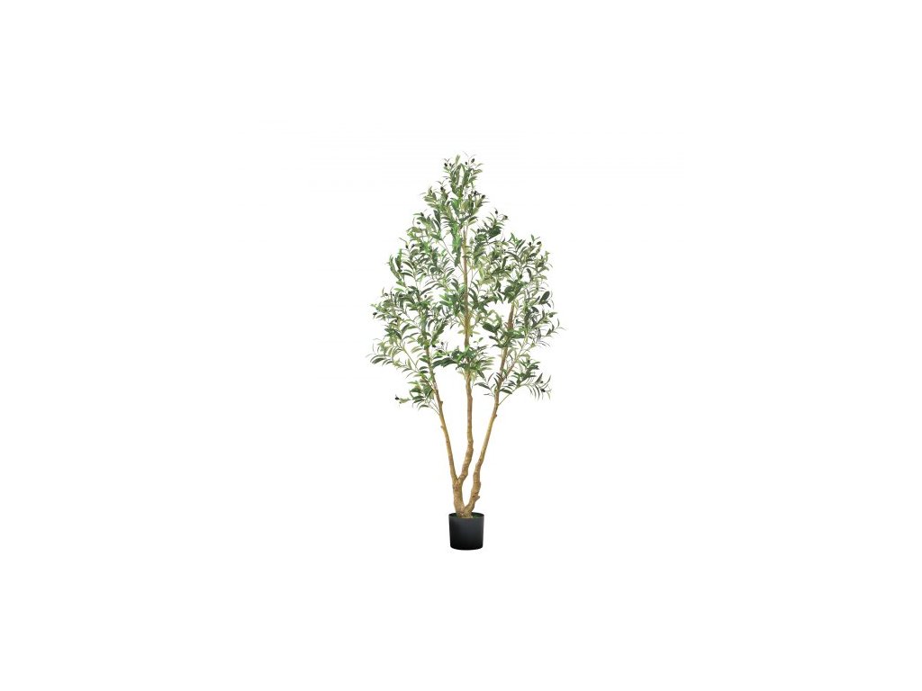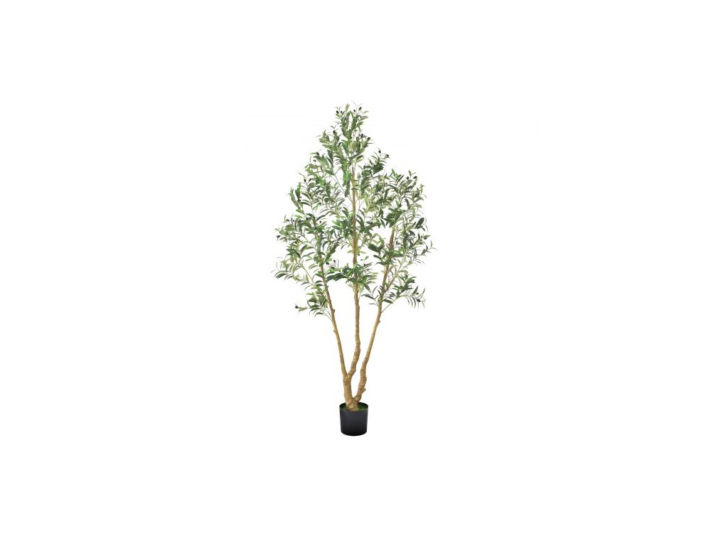 210cm umělý olivovník s černým květináčem, vysoký umělý strom s kmenem z přírodního dřeva a realistickými zelenými listy a plody, umělá rostlina do interiéru pro domácnost, kancelář, obývací pokoj, rohovou dekoraci