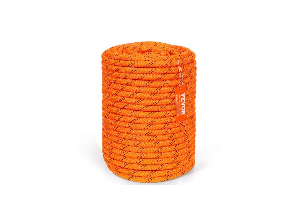 Dĺžka: 220 ft/67,06 m, limit pevnosti: 8000 lbs/35,58 kN, farba: Oranžová + čierna, číslo modelu: GJDL12-67, bezpečné pracovné zaťaženie: 1200 lbs/5,34 kN, materiál: Polyester priemer: 1/2 palca/12,7 mm