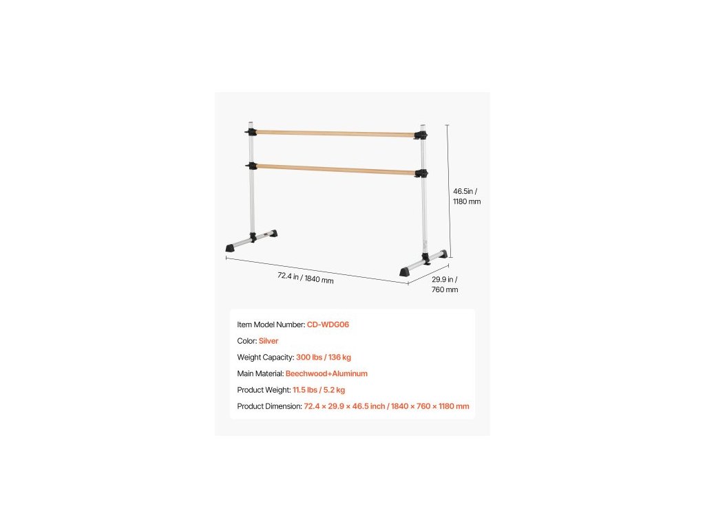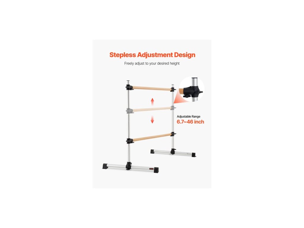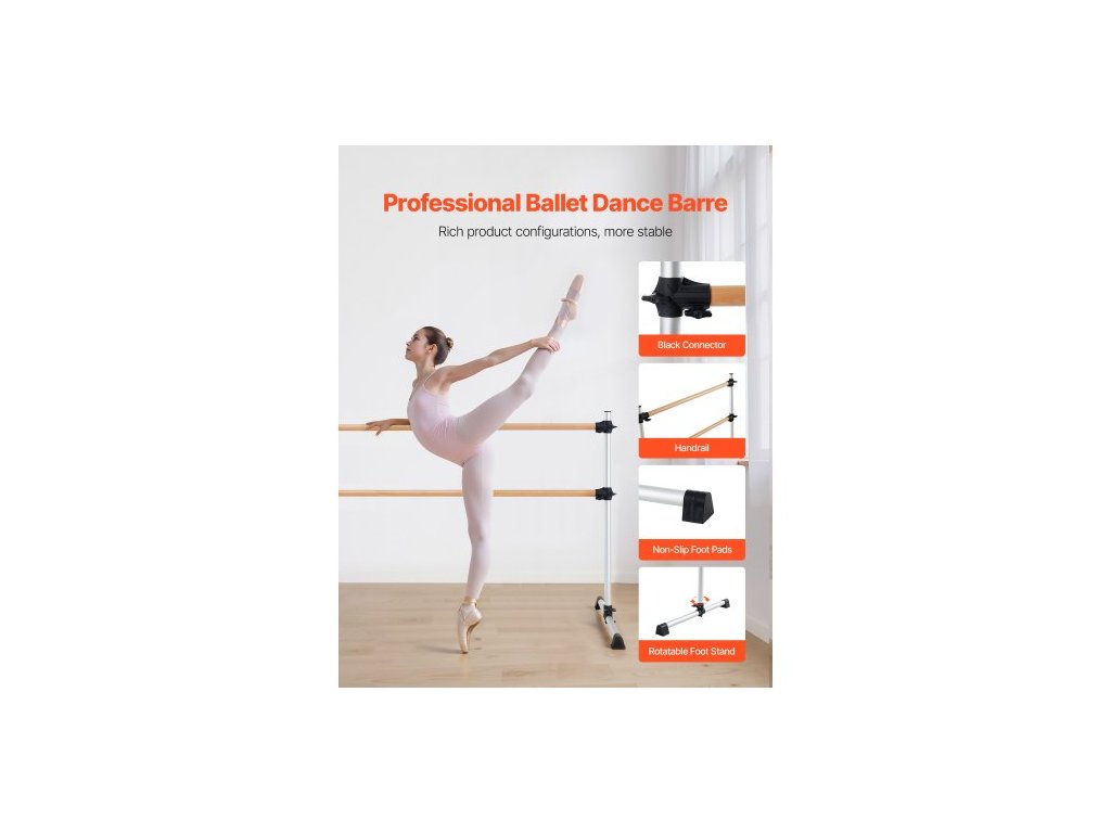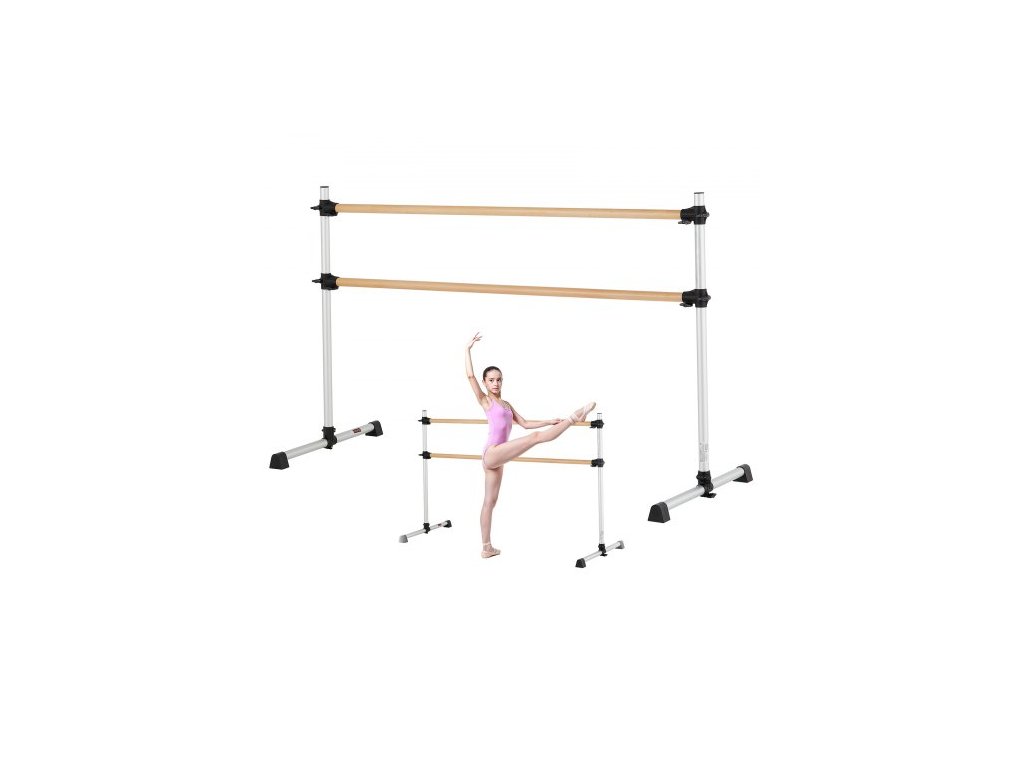 Baletní tyč , dvojitá buková tyč pro domácnost, volně stojící přenosná baletní protahovací taneční tyče, výškově nastavitelná posilovací pomůcka proti chvění, pro pilates a rovnováhu