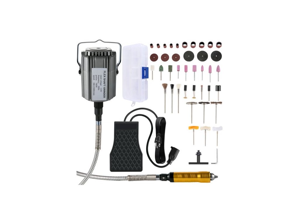 Brúska s ohybným hriadeľom 780 W Rotačný nástroj 500-23000 ot/min s 1/4" 3-lopatkovým skľučovadlom a hladkým nožným pedálom 131 ks Závesná brúska Leštenie šperkov Príslušenstvo pre domácich majstrov Brúsenie