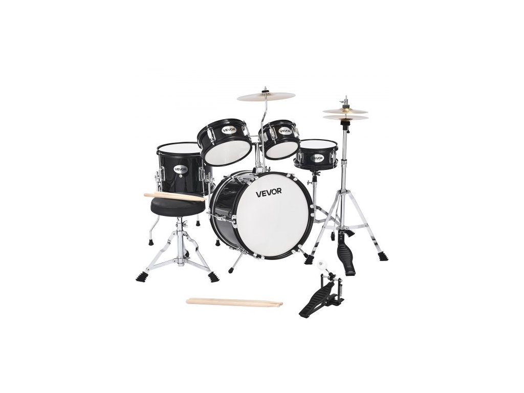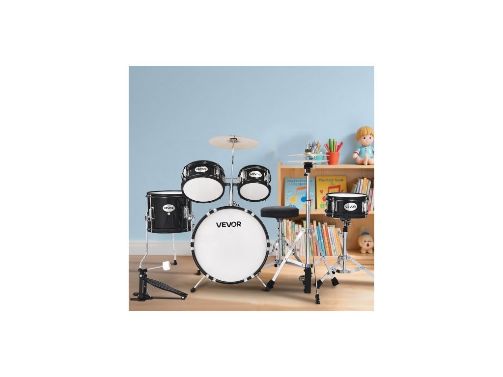 Dětská bicí sada , 5dílná sada pro začátečníky o průměru 355,6 mm, s nastavitelným trůnem a dvěma páry paliček, sada hudebních bicích nástrojů pro učení, pro děti ve věku 6-13 let (černá)