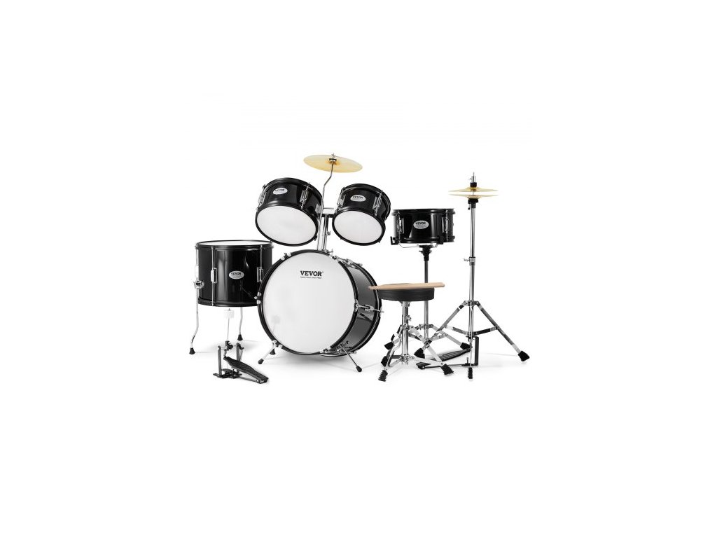Detská bubnová súprava 5 dielov 16 dielna detská bubnová súprava pre začiatočníkov s trónom čierna