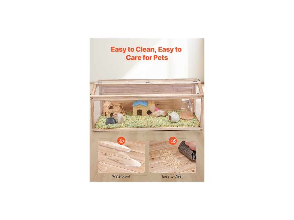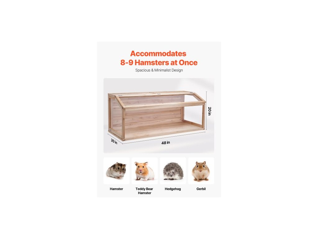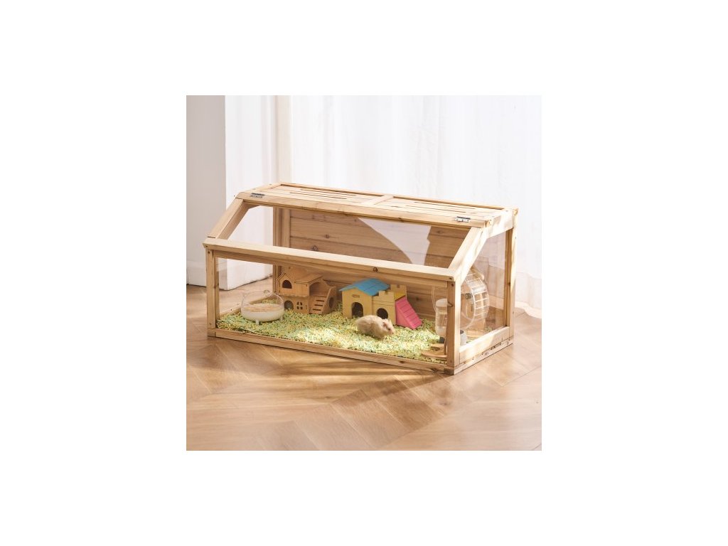 Drevená klietka pre škrečka, uhol pohľadu 270°, 48 x 20 x 20 palcov, klietka pre trpasličie škrečky s otváracou strechou, vetraná klietka pre malé zvieratá, klietka pre domáce myši, pieskovce, potkany, morčatá a myši
