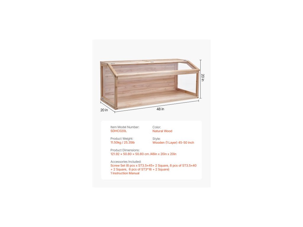 Hlavné materiály: 2 mm hrubý akryl, 20+10 mm hrubé cédrové drevo, farba: Hmotnosť výrobku: 11,50 kg,Štýl: Rozmery výrobku: 121,92 x 50,80 x 50,80 cm / 48 x 20 x 20 palcov