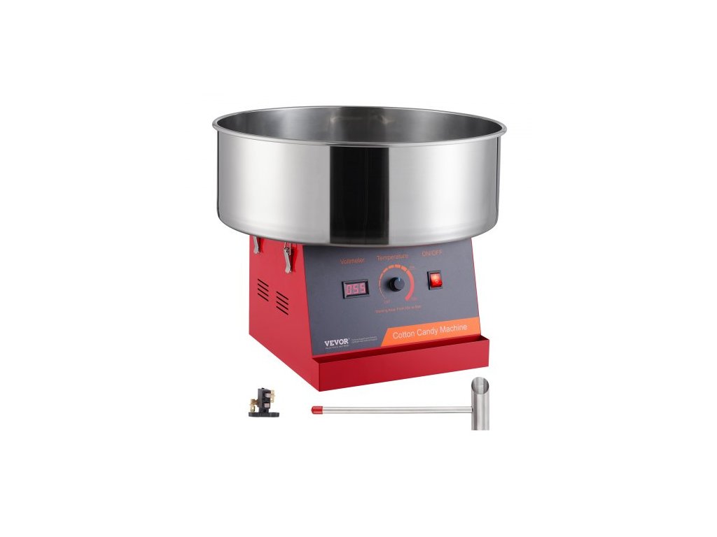 Elektrický stroj na cukrovú vatu , 1000W výrobník cukrovej vaty, komerčný stroj na cukrovú vatu s miskou z nehrdzavejúcej ocele a naberačkou na cukor, ideálny na domáce detské narodeniny, rodinnú oslavu (červený)