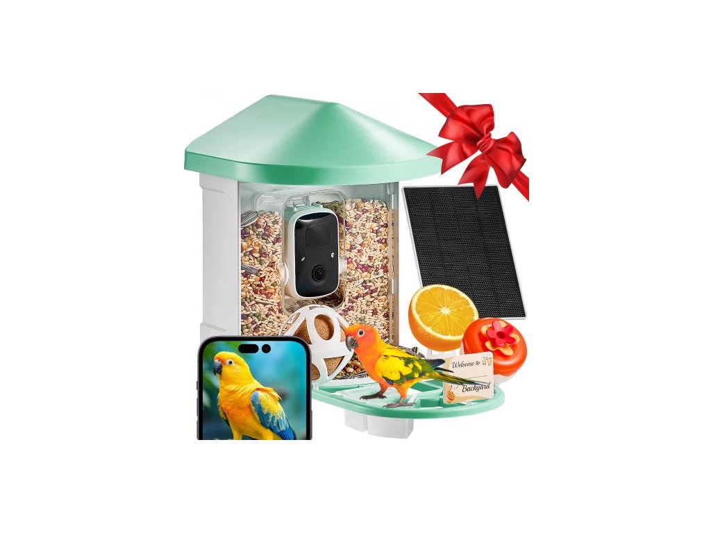 Inteligentné kŕmidlo pre vtáky s kamerou 2K HD AI Identifikácia druhov vtákov Automatické zachytenie