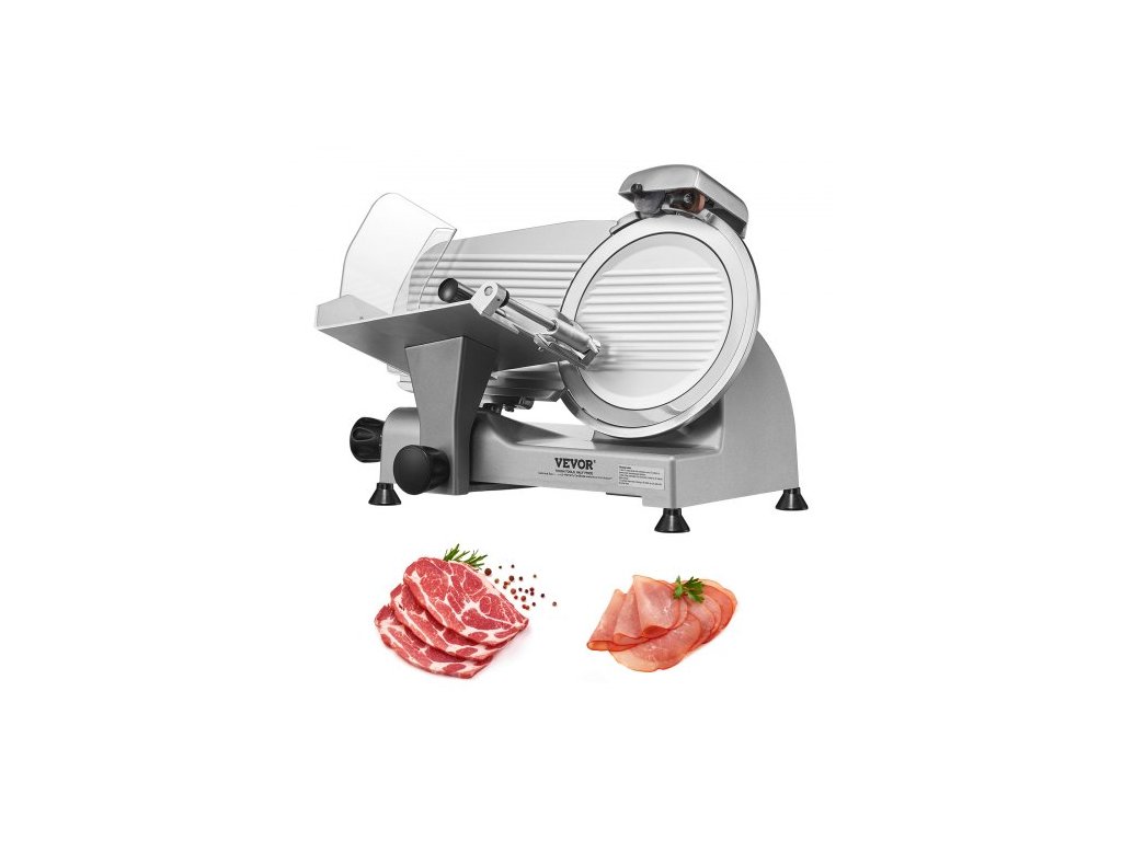 Krájač na mäso , 340W elektrický krájač na lahôdky s 10" nožom z nehrdzavejúcej ocele SUS420 a zabudovaným brúsnym kameňom, nastaviteľná hrúbka 0-0,6 palca na komerčné a domáce použitie, krája mäso a syr