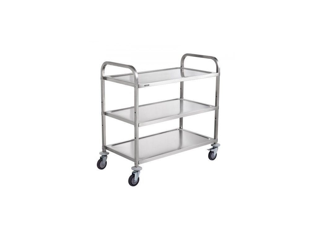 Kuchynský úžitkový vozík , 3 úrovne, drôtený vozík s nosnosťou 450 LBS, oceľový servisný vozík na kolieskach, kovový úložný vozík s 80 mm košom, zahnutá rukoväť PP vložka 6 háčikov, na vnútorné a vonkajšie použitie