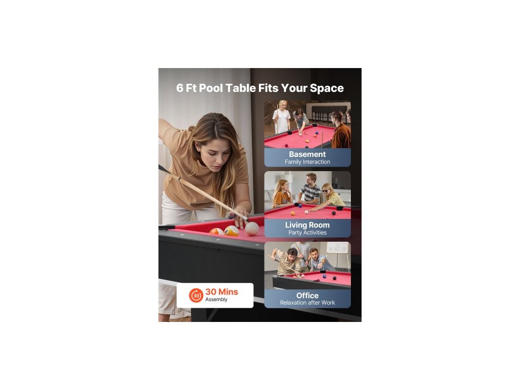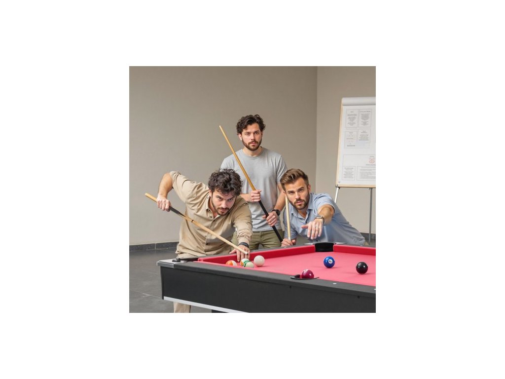Kulečníkový stůl , přenosné kulečníkové stoly 183 cm, stabilní herní stůl s nastavitelnými nohami, sada obsahuje kouli, tágo, stojan, křídu a štětec, černý s červeným hadříkem, pro rodinné použití, rekreační místnost