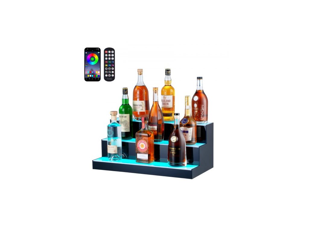 LED osvetlený bar s displejom pre fľaše alkoholu RF & App Control 24" 3-stupňová polica