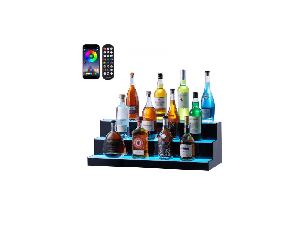 LED osvetlený bar s displejom pre fľaše alkoholu RF & App Control 30" 3-stupňová polica