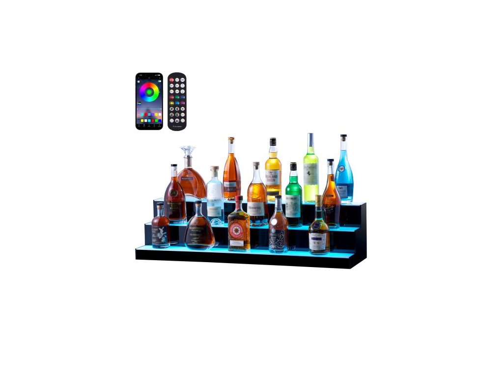 LED osvetlený bar s displejom pre fľaše alkoholu RF & App Control 40" 3-stupňová polica