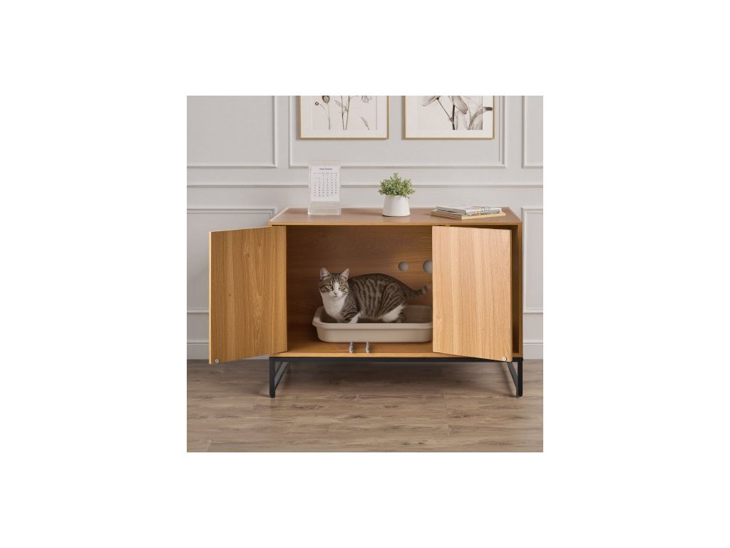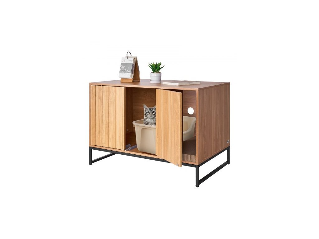 Nábytek na kočičí toaletu , skrytá skříňka na kočičí toaletu 80 cm s podložkou a úložným prostorem, vodotěsný koncový stolek do kočičí toalety, kočičí bouda, vhodná pro většinu kočičích toalet, do ložnice a obývacího pokoje