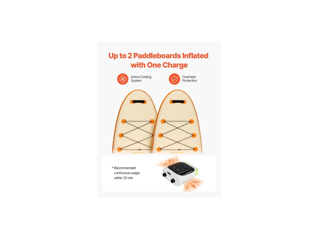 Pumpa na paddleboard , vysokotlaká 20PSI, dobíjecí bateriová, dvoustupňová elektrická vzduchová pumpa na SUP s automatickým vypnutím a funkcí vyfukování, ideální pro nafukovací paddleboard, stan a matraci