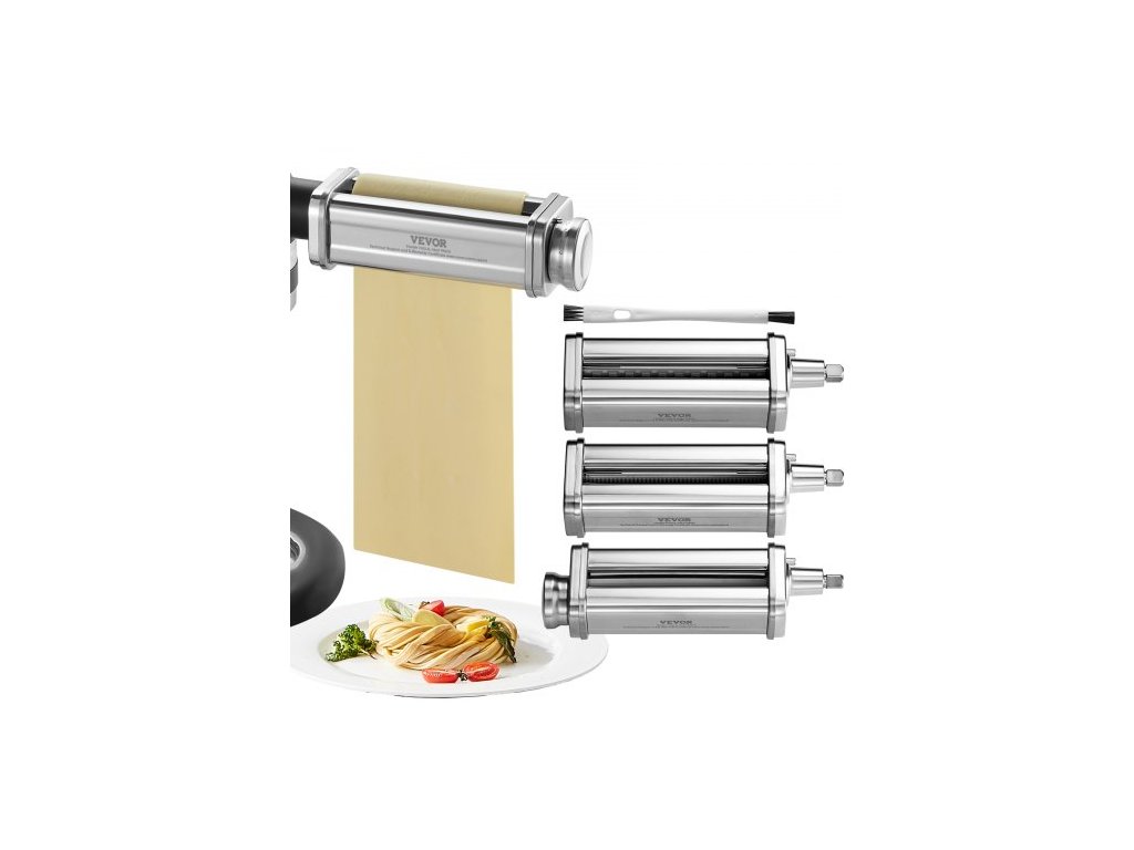 Nástavec na cestoviny pre stojanový mixér KitchenAid, sada valčekov na cestoviny z nehrdzavejúcej ocele vrátane valčeka na cestoviny, krájačov na špagety a fettuccine, výrobník cestovín s 8 gombíkmi s nastaviteľnou hrúbkou, 3 kusy