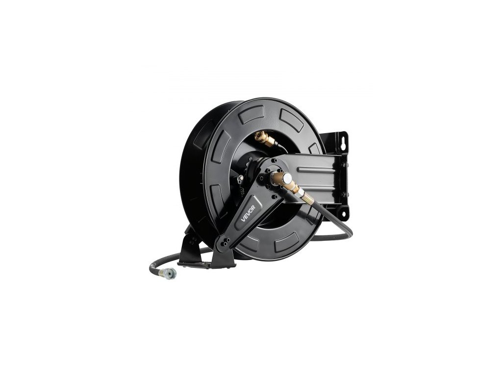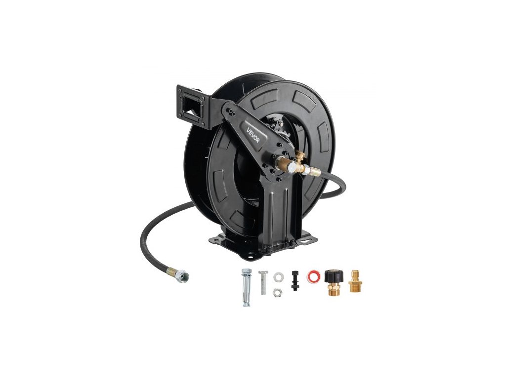 Naviják hadice pro tlakový čistič , 15,2 m x 9,5 mm, zatahovací, výkonný ocelový naviják hadice pro mytí, max. 4000 PSI, automatické navíjení, flexibilní montáž na zeď/podlahu pro mytí aut, zahrady a podlah