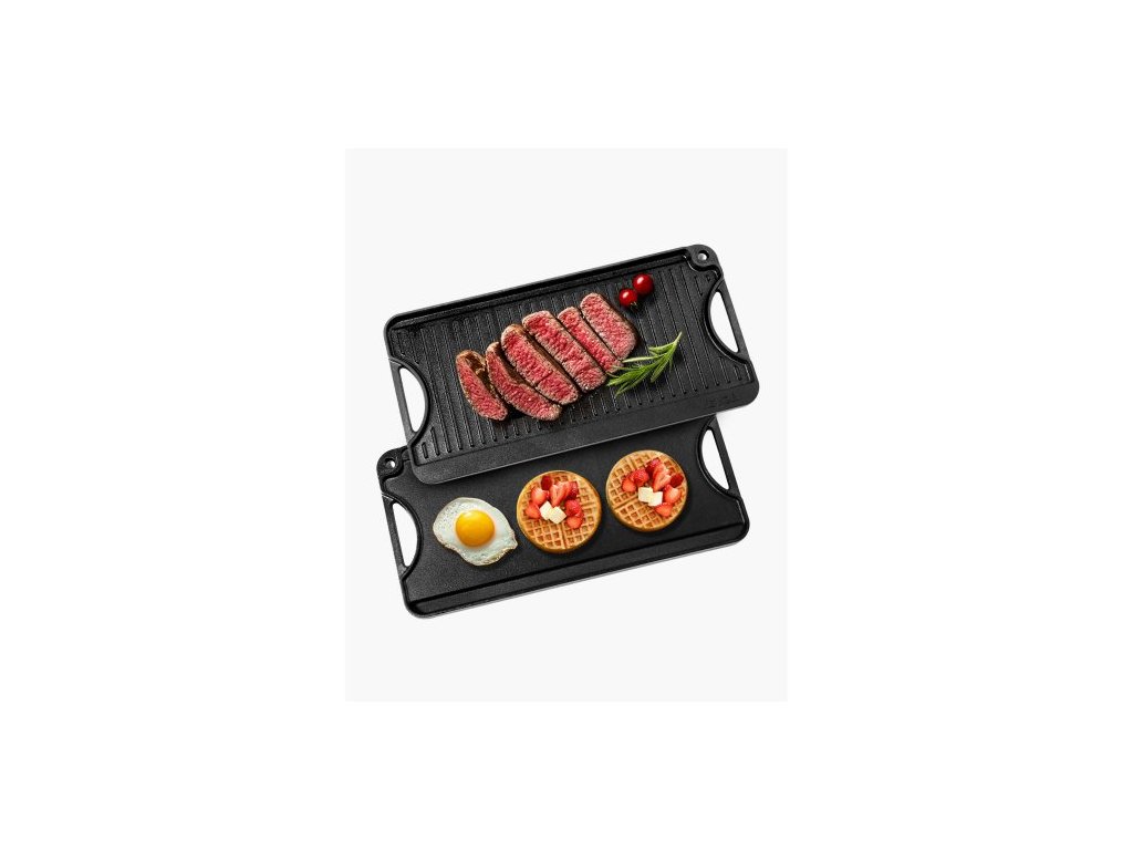 Oboustranný gril/plotna, litinová plotna s předkořeněním 20x10 palců, přenosná obdélníková pánev s rukojetí, rodinné nádobí pro vnitřní/venkovní sporák, plyn, kempingové grilování, černá