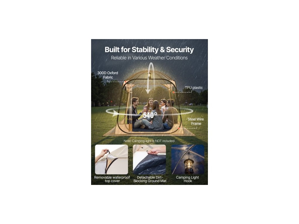 Pop-up sportovní stan, 1,83x1,83 m, průhledný bublinový stan pro 2-4 osoby, vodotěsný venkovní stan s podlahovou rohoží a horním krytem, zahradní iglú, kopulovitý stan, kempingový přístřešek pro akce, rybaření, fandění