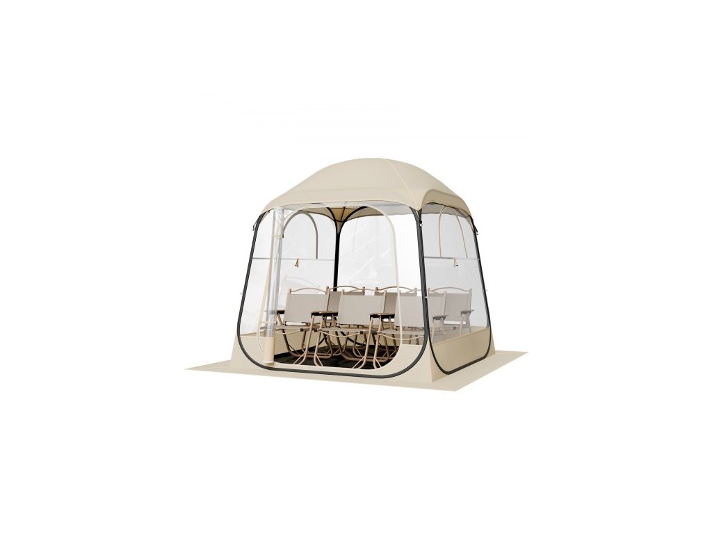 Způsob otevírání: Vyskakovací ze 4 stran,Materiál výrobku: Plochý ocelový drát + sklolaminátová tyč + 0,15 mm TPU + oxfordská tkanina 210D,Hlavní materiály: Plochý ocelový drát + sklolaminátová tyč + TPU (0,15 mm) + oxfordská tkanina 210D,Barva: Béžová + průhledné PVC s černým lemováním a černými sklolaminátovými tyčemi,Číslo modelu výrobku: 121084,Rozměry výrobku: 72,05 × 72,05 × 76,77 1830 × 1830 × 1950 mm,Typ položky: Sportovní stan,Čistá hmotnost: 7,50 kg
