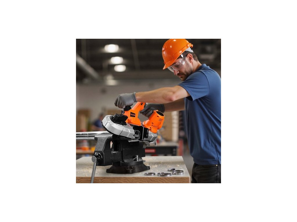 Přenosná pásová pila , hloubka řezu 65 x 65 mm, pásová pila 360 W s bezkartáčovým motorem, akumulátorová a kompaktní přenosná pásová pila, integrované závěsné háky, variabilní rychlost 0–192 m/min pro řezání kovu a dřeva (bez nástroje)