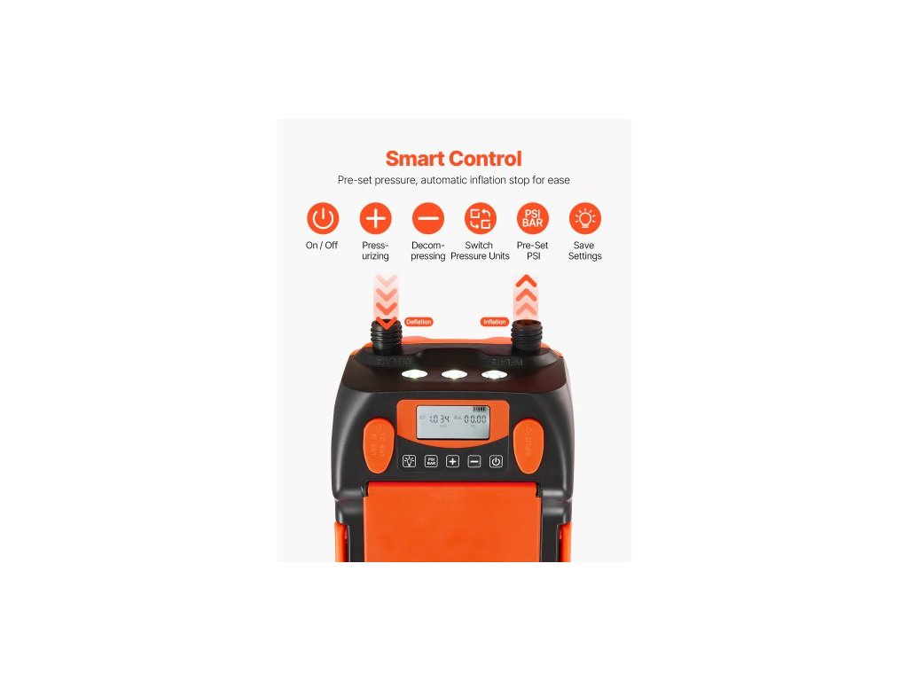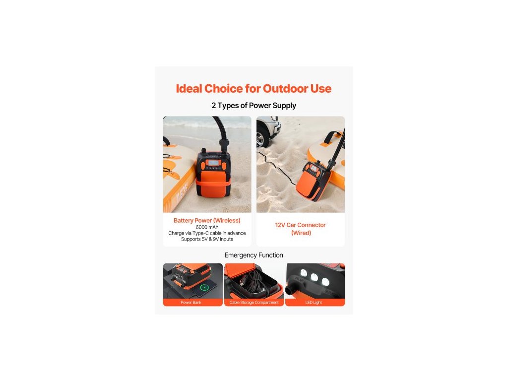 Pumpa na paddleboardy 20PSI, dobíjateľná batéria, dvojstupňová nafukovacia a vyfukovacia vzduchová pumpa SUP s automatickým vypnutím, 12V DC konektor do auta a LED svetlo, ideálna pre nafukovacie člny, stany a matrace