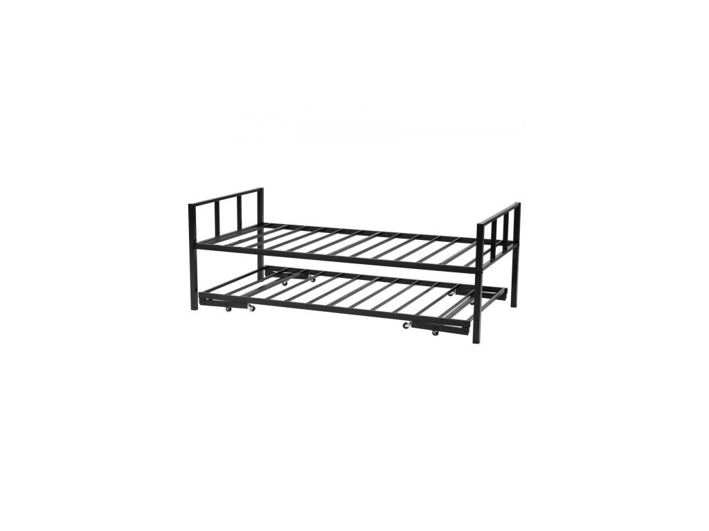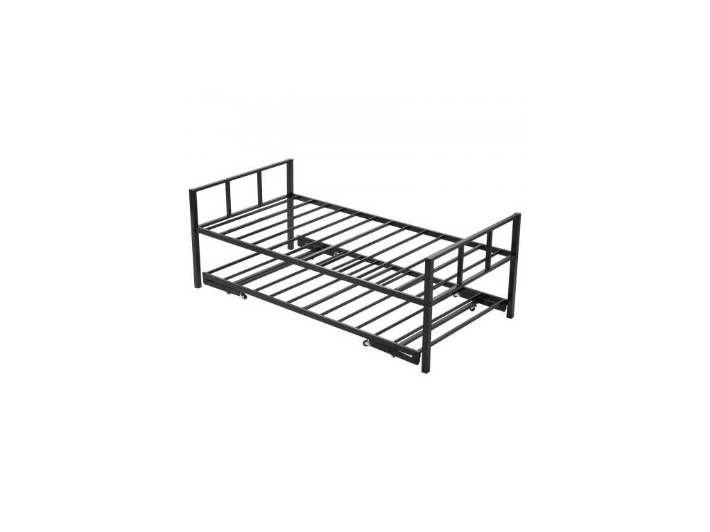 Rám denní postele pro dva, denní postel s výsuvným ložem, odolný kovový rám postele s platformou, denní postel pro dva s kovovými lamelami do obývacího pokoje, ložnice, pokoje pro hosty, snadná montáž, černá