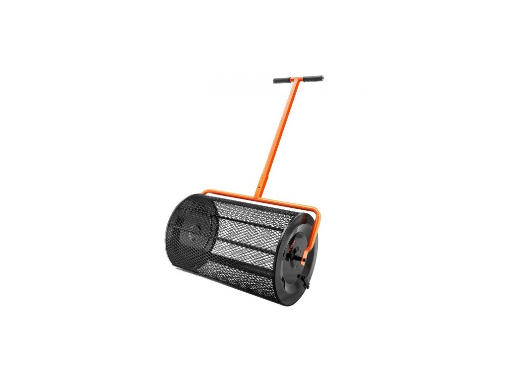 Rozmetadlo kompostu , 24,4-25,6" výškovo nastaviteľná rukoväť, 24" široký valec na trávnik a záhradnú rašelinu s bočnými západkami, oceľový sieťový kôš s práškovou povrchovou úpravou na rozmetanie hnoja, ornice, čierna farba