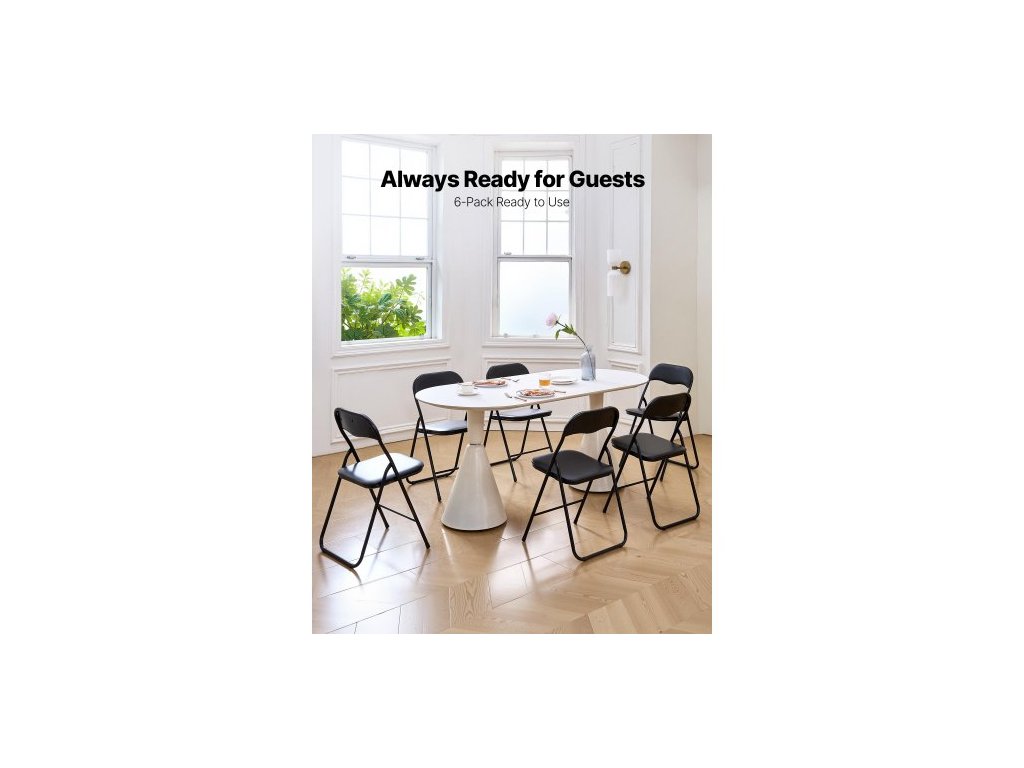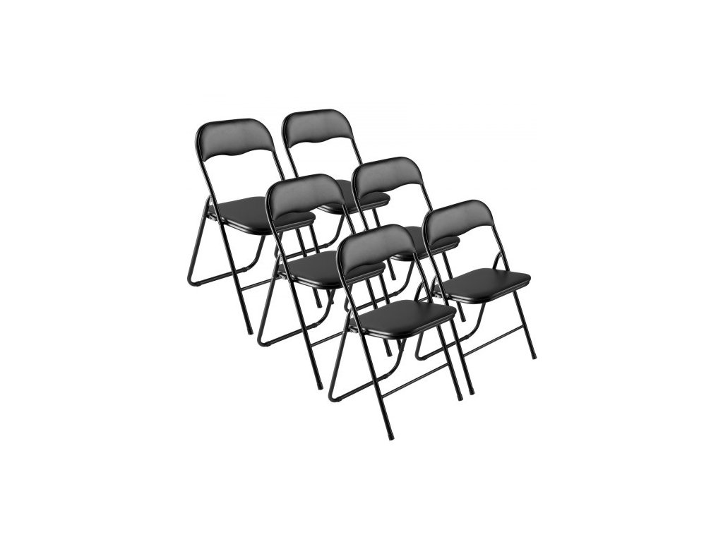 Ďalšie: Každá stolička má 2 otvorené puzdrá a 2 rúrkové puzdrá,Nosnosť: 350 libier / 158 kg na stoličku,Zložená: 1,8 x 17,1 x 34,1 palca / 4,5 x 43,5 x 86,5 cm,Celková čistá hmotnosť: 45,0 libier / 20,4 kg,Farba: čierna,Rozložená: číslo modelu položky: B60013-16, Množstvo: 6 balení, Čistá hmotnosť jednej stoličky: 7,5 lbs / 3,4 kg, Materiál: Q195++PVC koža + špongia + drevotrieska + MDF (operadlo), Skladanie: Áno