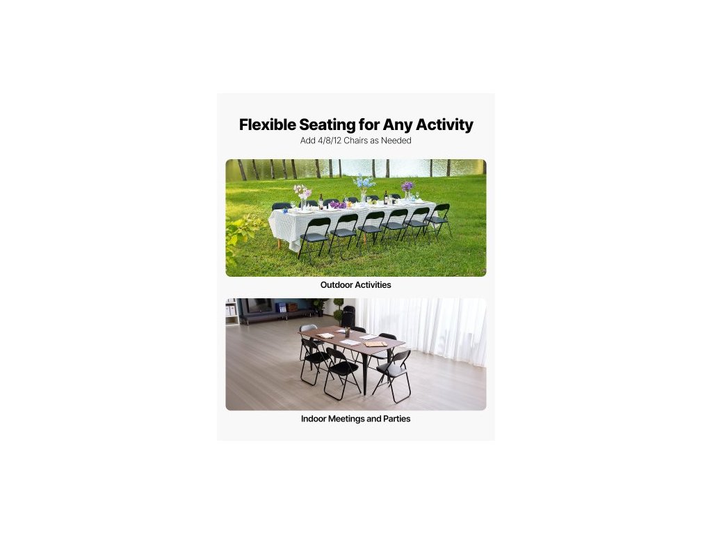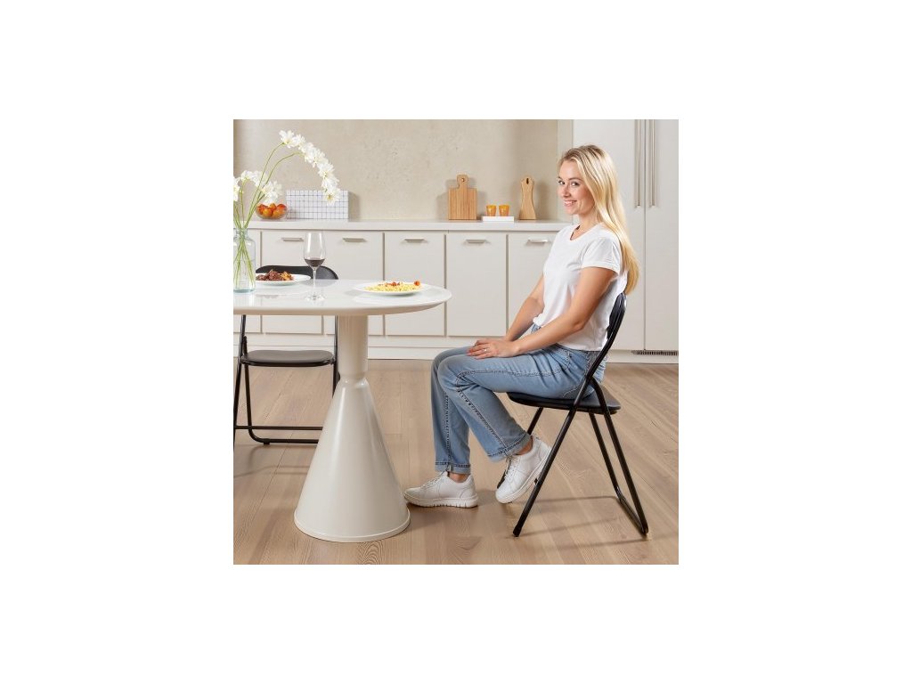 6-dielna skladacia stolička, skladacie kožené stoličky s odolným kovovým rámom a polstrovaným vankúšom, prenosné skladacie stoličky na kartový stolík, stohovateľné sedadlá pre domácnosť, dvor, záhradu, párty, podujatia, čierna