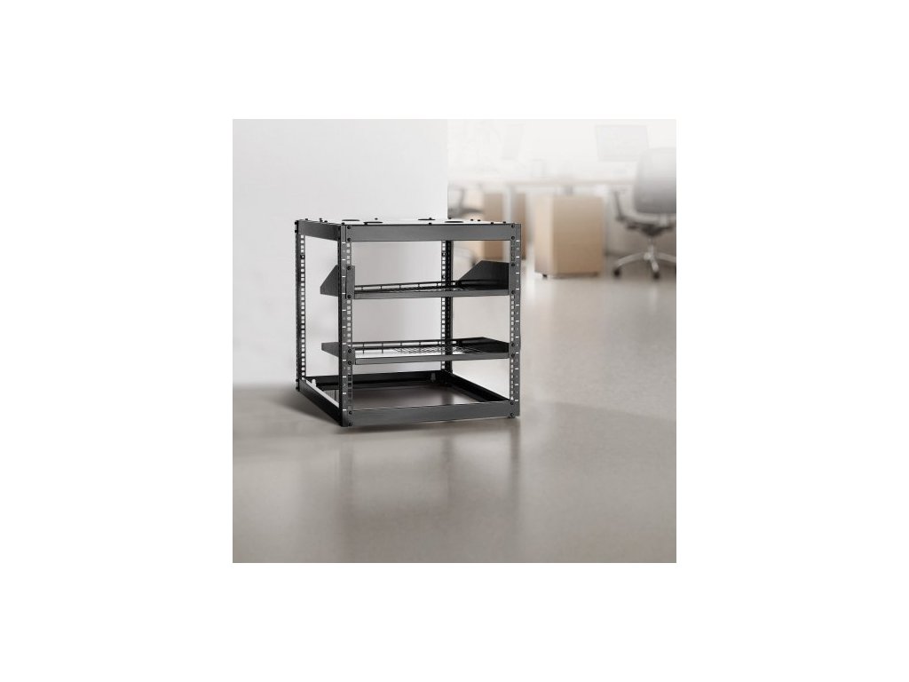Síťový rack 10U s otevřeným rámem, hloubka 585 mm, nástěnný nebo stojící serverový rack, odolný 4sloupkový, s odvětrávanými policemi a montážním materiálem, pojme veškeré vaše síťové IT vybavení, AV zařízení.