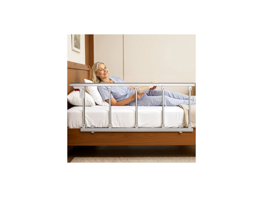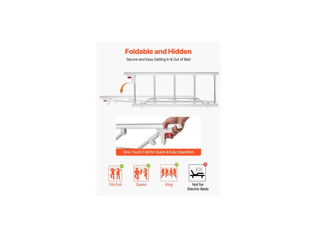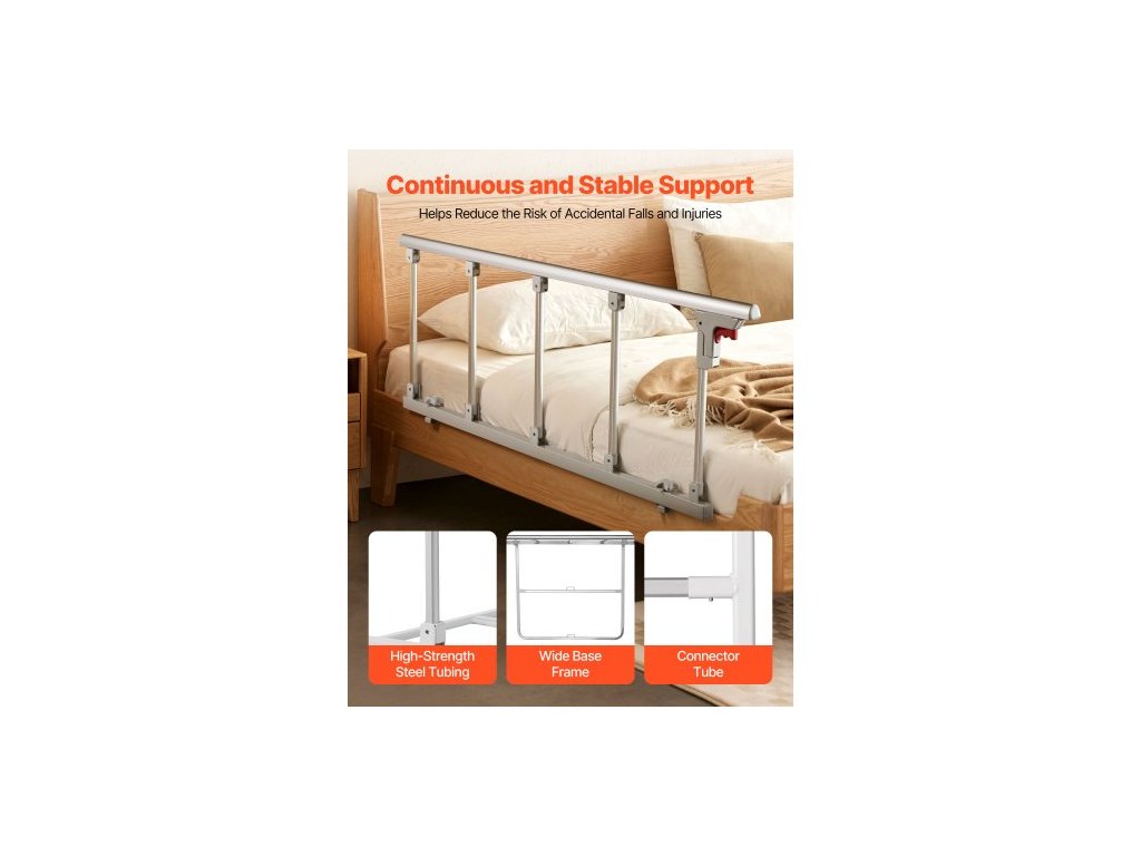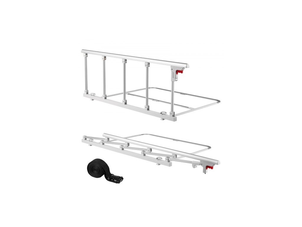 Skladacia zábrana na posteľ pre seniorov, nočná zábrana 122 cm s upevňovacím popruhom, nastaviteľná výška rúrkovej nočnej tyče, vysokopevnostná kovová zábrana na posteľ pre seniorov, úchyt pre postele King, Queen, Full, Twin