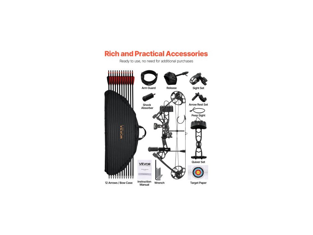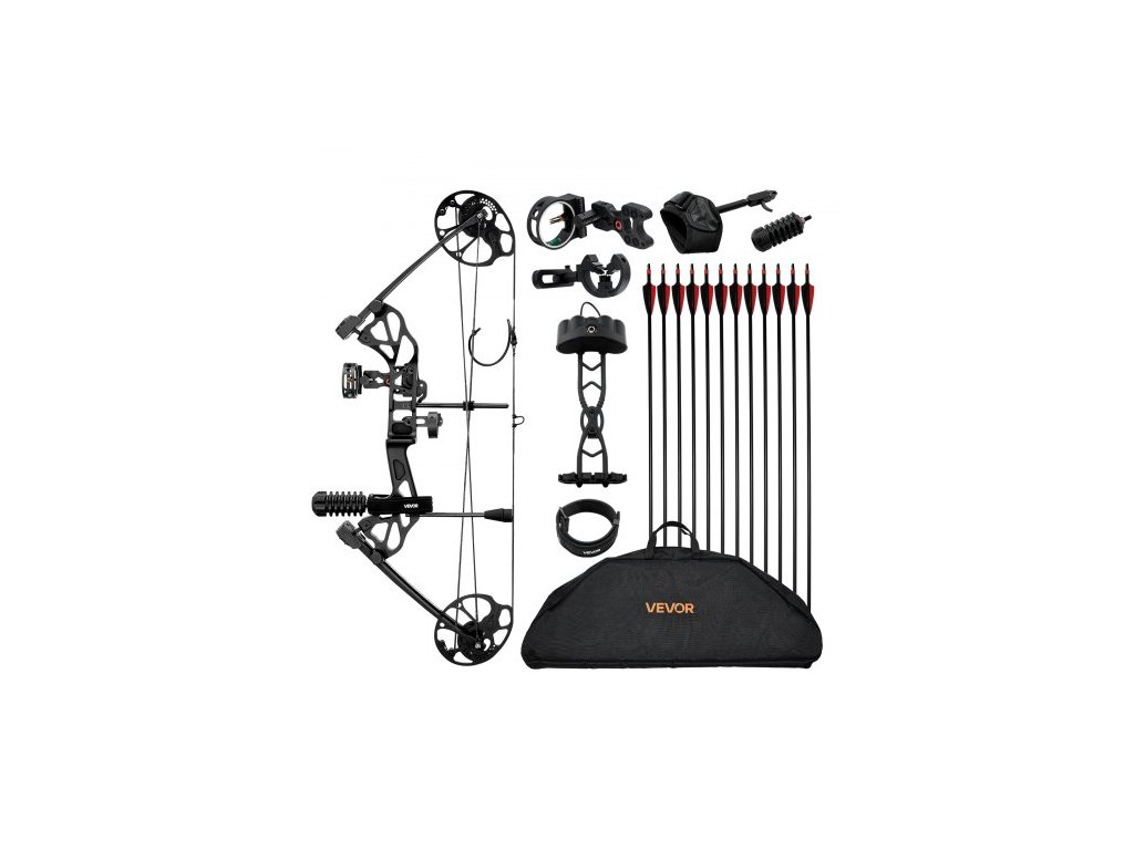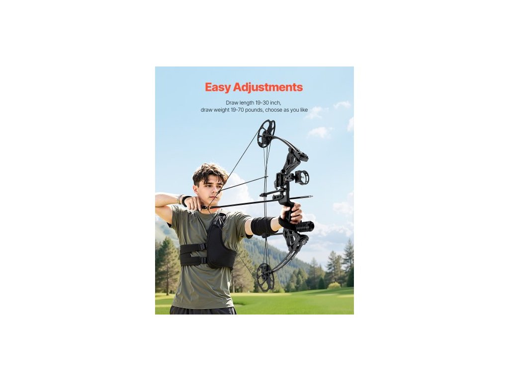 Složený luk pro lukostřelbu, nastavitelná délka nátahu 19-30 palců, sada pro začátečníky, síla nátahu 19-70 liber, sada lukostřeleckých luků a šípů, sada pro praváky s loveckým vybavením, 320 fps, černá