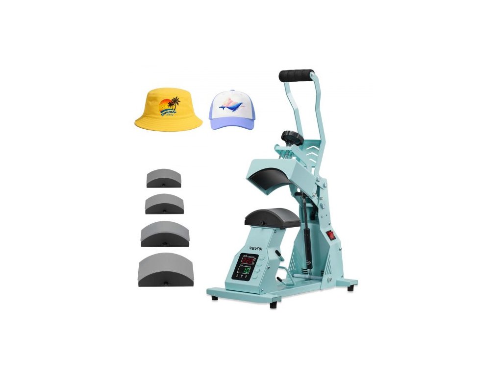 Termolis na klobúky , so 4 vymeniteľnými doskami, presné ovládanie teploty a času, lis na klobúky na nažehľovanie HTV a sublimačné projekty, na klobúky, čelenky, manžety, závesy, zelený