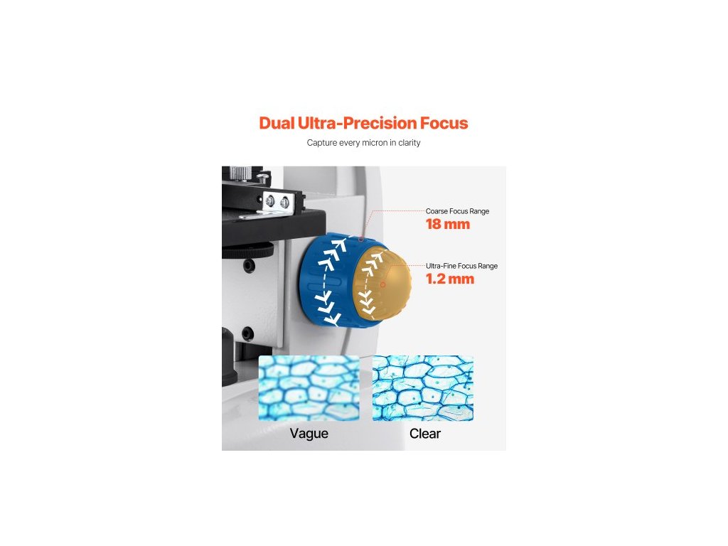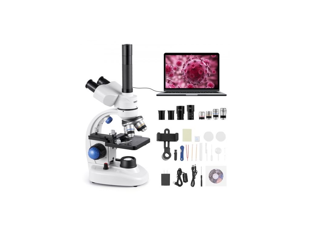 Celkové zvětšení: 40X, 100X, 250X, 400X, 1000X, 2000X, 2500X, 4000X, 5000X, Zdroj světla: LED lampa, Rozměry výrobku: 5,5 x 7,5 x 13,3 palce / 140 x 190 x 338 mm, Napájecí adaptér: Standardní zástrčka EU, Výstup: DC 5V/2A, Kabel Délka: 1000 mm, Elektronický okulár: 1,5 megapixelů, Hlavní materiály: Základna: Hliníková slitina; Tělo: Hliníková slitina + ABS plast, Specifikace: Trinokulární, zvětšení 40–5000x, Kondenzor: Nastavitelná clona, Rozsah zvětšení: 2 sady okulárů: 2x, 10x, 25x; Objektivy: 4X, 10X, 40X, 100X, Zaostřování: Přesné zaostřování, hrubé (18 mm), ultrajemné (1,2 mm) nastavení, Hledačka: 3 tubusy, otočná o 360°, Napájení: Napájeno adaptérem, Číslo modelu: H-33A, Stolek: 95 x 95 mm, Mechanický stolek s rozsahem pohybu 70 x 40 mm, Parametry napájení: Vstup: AC 110–240 V, 50/60 Hz, Čistá hmotnost: 2,22 kg ±5 % (včetně veškerého příslušenství)