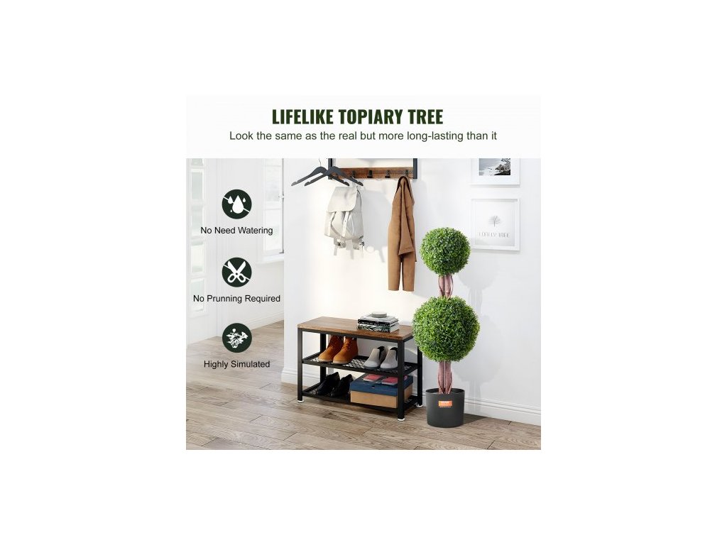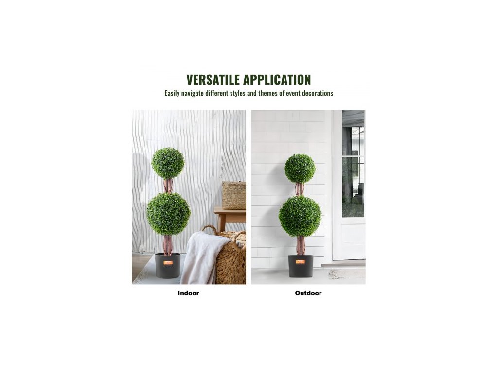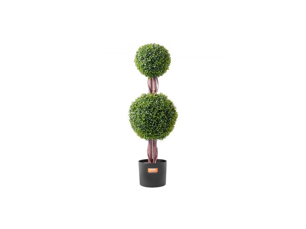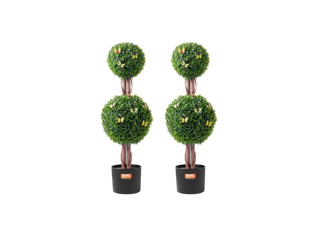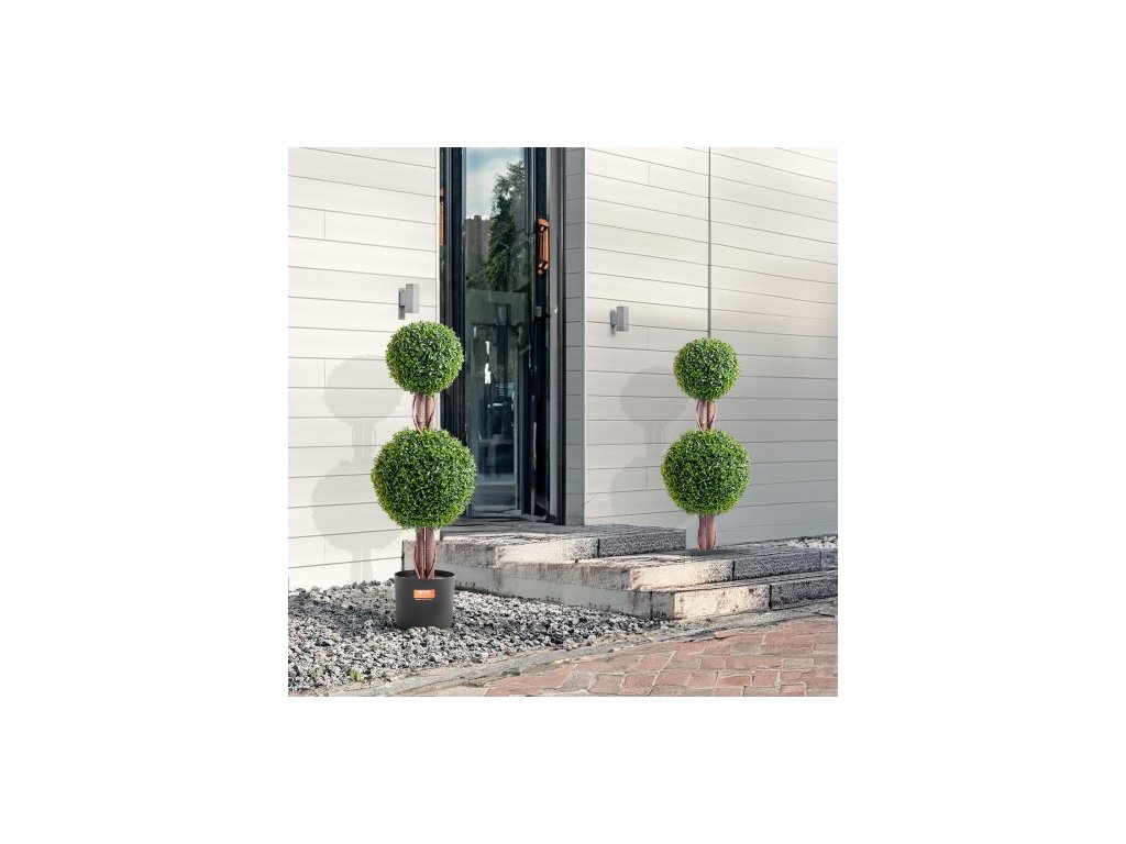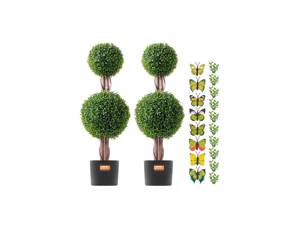 Umelá vždyzelená rastlina, 91 cm vysoká (2 kusy), umelá topiara s dvojitou guľou, umelá rastlina s extra listami, kvetináčom a malou dekoráciou, sada s UV ochranou na dekoráciu do interiéru/ exteriéru