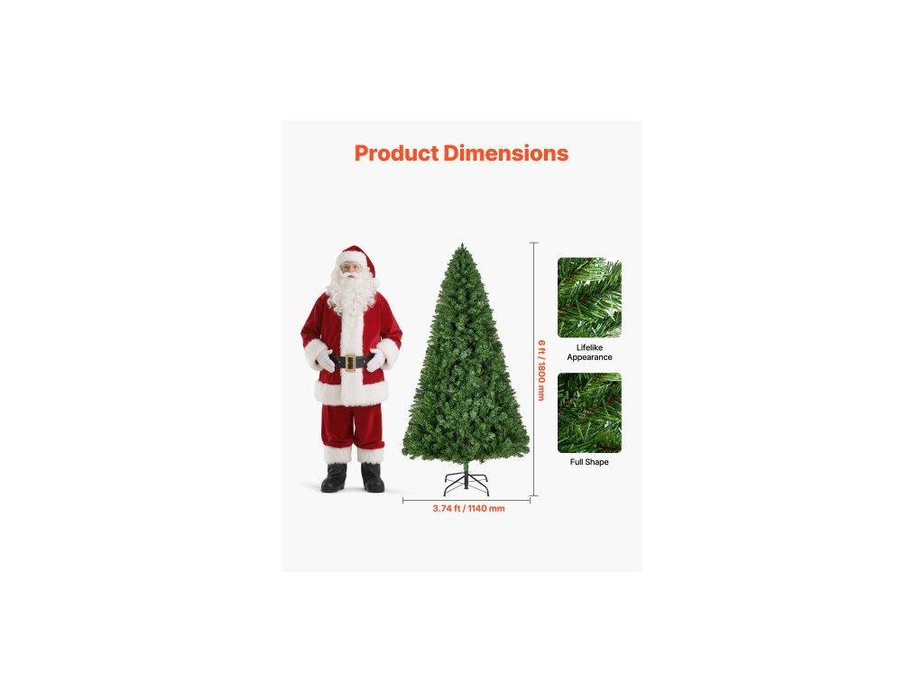 Vánoční stromeček, 1,8m umělý vánoční stromeček, plnohodnotná vánoční dekorace s 1250 větvemi a robustní kovovou základnou pro domácí, večírkové a kancelářské dekorace