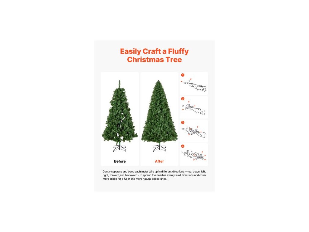Vánoční stromeček, 1,8m umělý vánoční stromeček, plnohodnotná vánoční dekorace s 1250 větvemi a pevnou kovovou základnou pro domácí, párty, kancelářskou dekoraci
