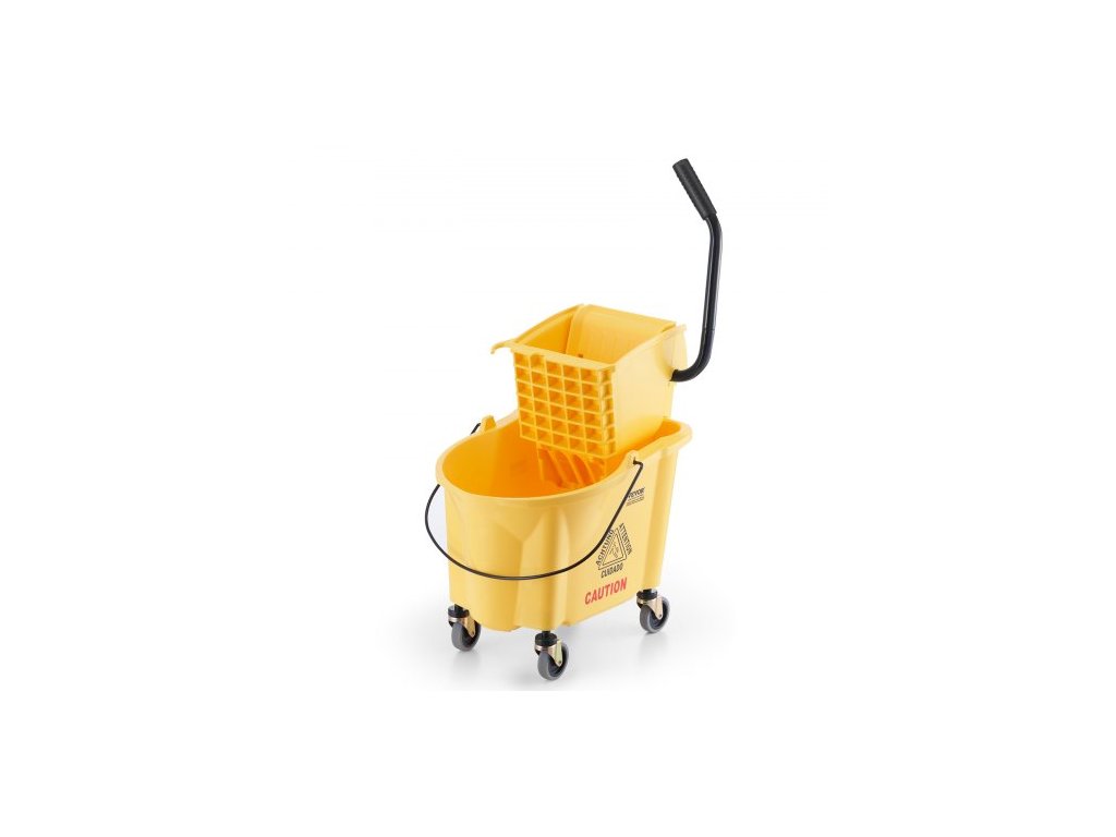 vedro na mop so žmýkačkou, 26 m2. Komerčné vedro na mop s bočným lisom, vedro s bočným lisom a kombinovaný lis na kolieskach, na profesionálne/priemyselné/firemné čistenie podláh, žlté