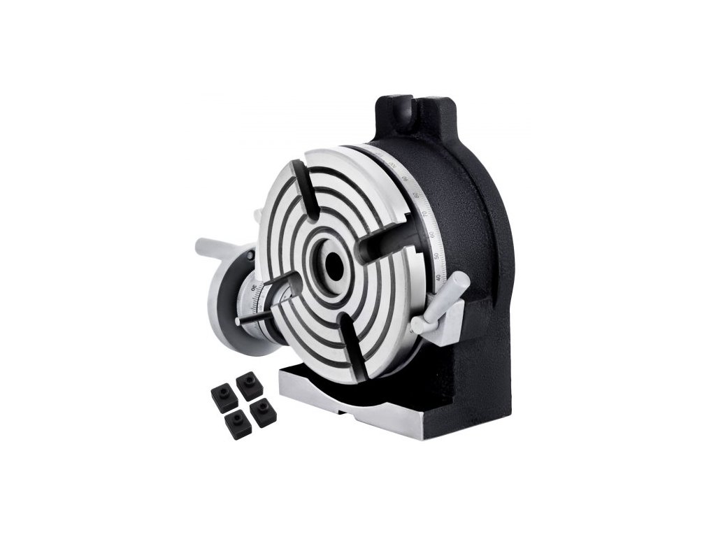 Základný vertikálny rozmer: 205 x 80 mm / 8 x 3,15", Pracovný stôl so stupnicou: 360°, Vertikálne napätie. hmotnosť bez obalu: 11,1 kg / 24,47 lb,Presnosť kruhu: 0,04,Počet drážok: 4,Priemer upínacieho stola: 150 mm / 5,9",Šírka drážky: 14 mm / 0,43",Výška : 80 mm / 3,15",Horiz.40kg / 88,18 lb, MK: 2