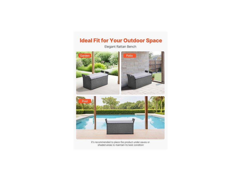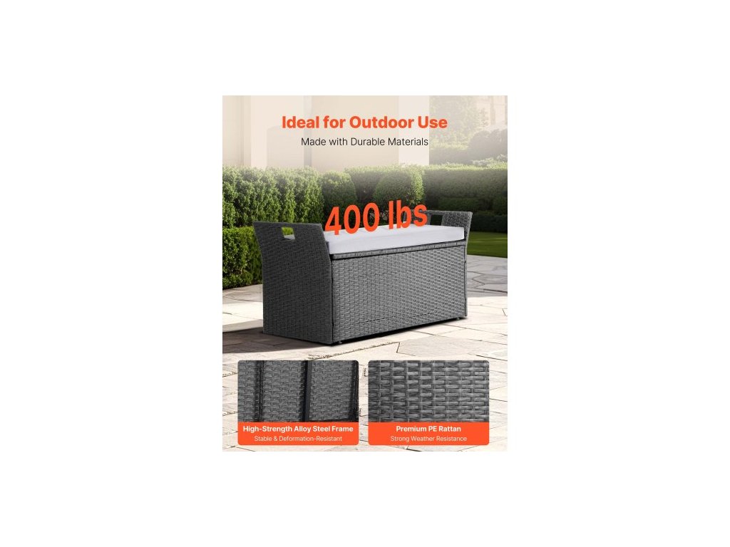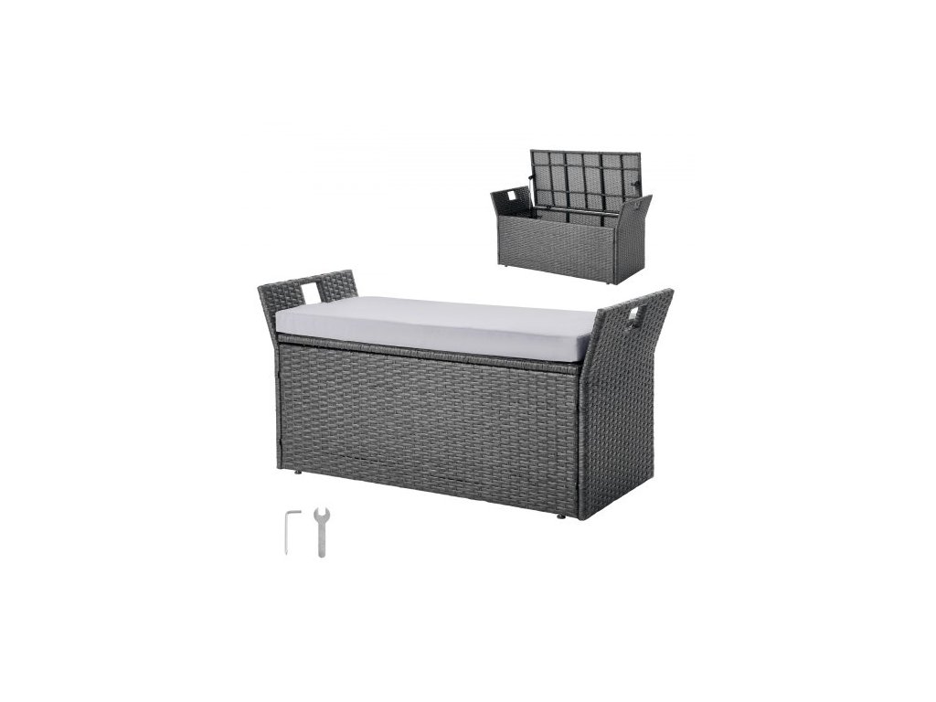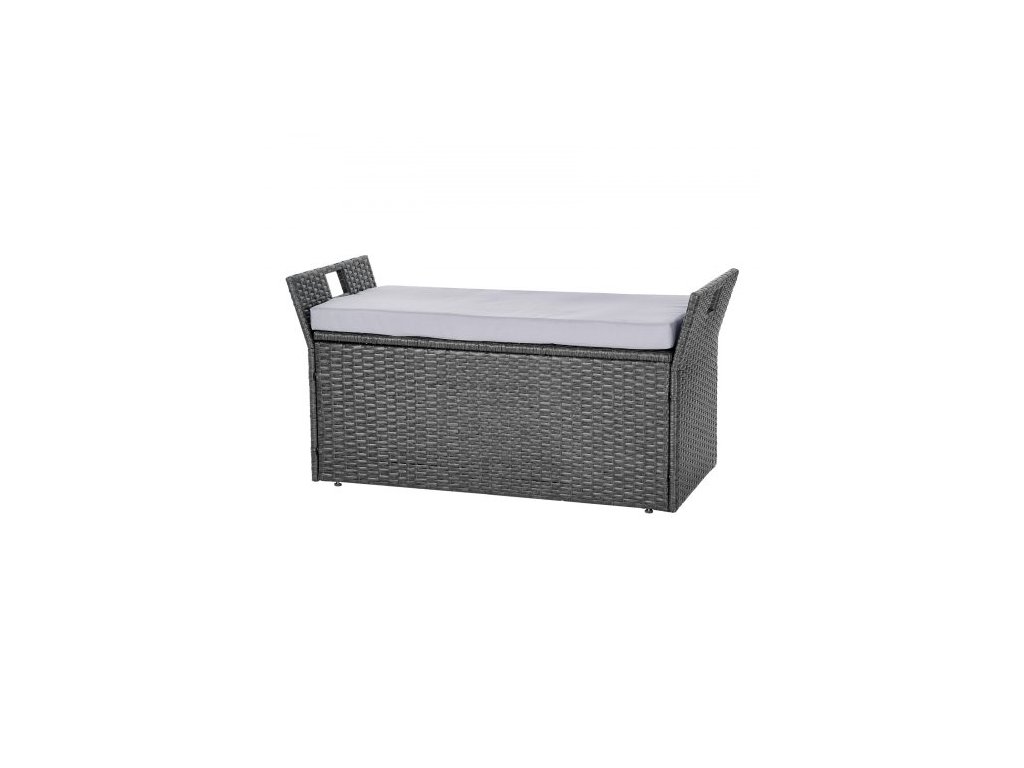 Vonkajšia úložná lavica , úložná lavica z PE ratanu pre 2 osoby, 151l box na terasu s vankúšom a bočným držadlom, nosnosť do 181 kg, vonkajšia dekorácia na sedenie a verandu odolná voči poveternostným vplyvom na terasu, záhradu, balkón