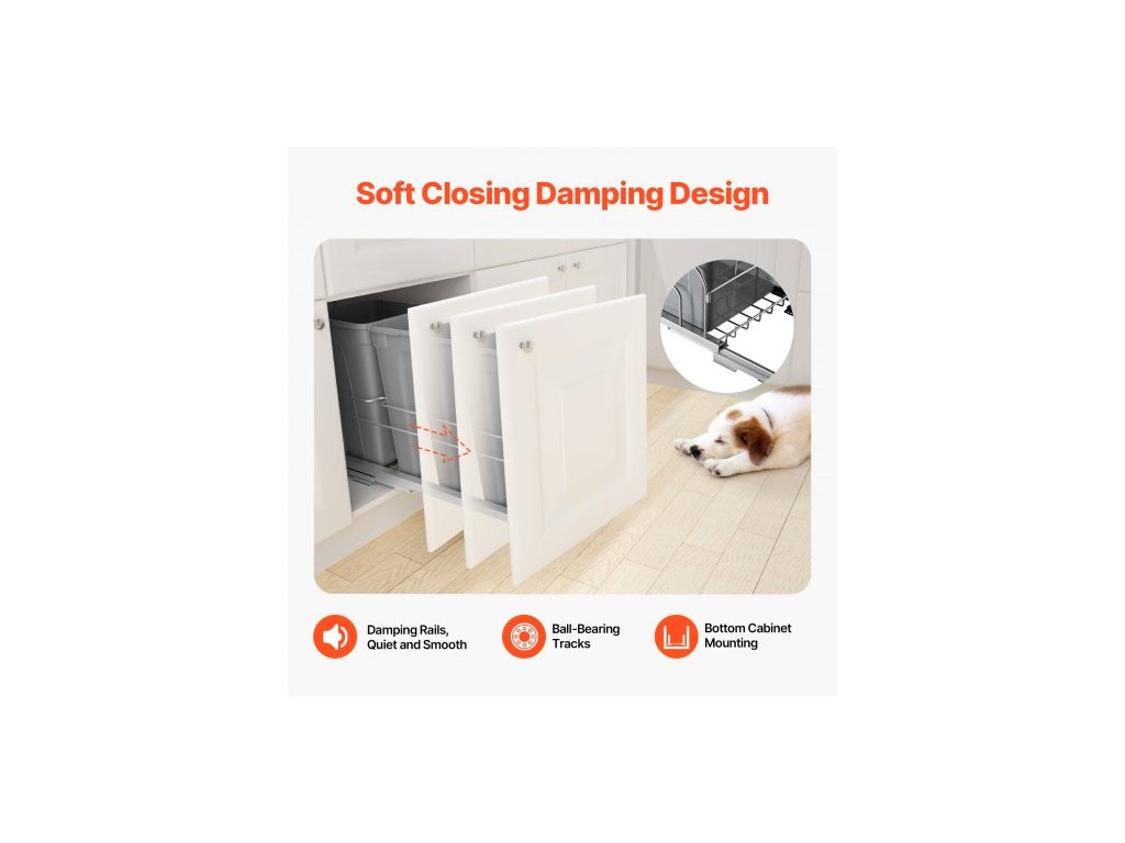 Výsuvný odpadkový koš , 27 qt x 2 dvojitý podstavec pro kuchyňský odpad, odolný koš na tříděný odpad s dvířky a měkkým zavíráním, pro kuchyňskou linku, dřez, pod pracovní desku (šedý)