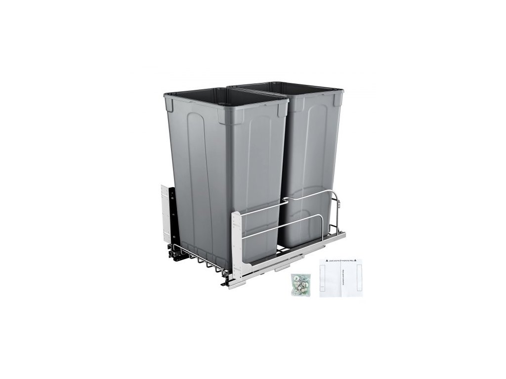 Výsuvný odpadkový koš , 50 qt x 2 Dvojitý podstavec pro kuchyňský odpad, Odolný koš na tříděný odpad s dvířky a měkkým zavíráním, pro kuchyňskou linku, dřez, pod pracovní desku (šedý)